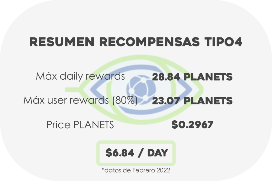 - Para los TIPO 4 se asigna un 20% del supply total anual (106.825.000 tokens/año ; 292.671 tokens/día)