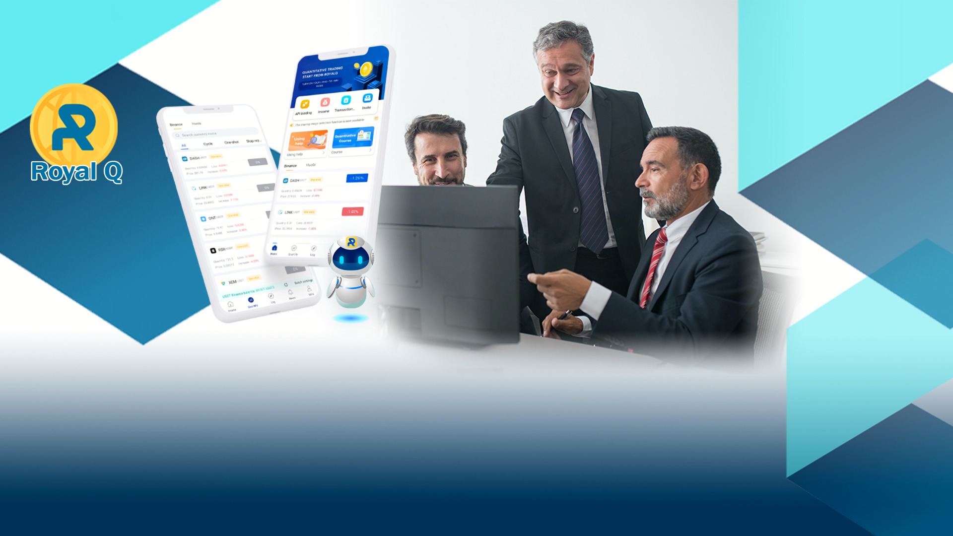RoyalQ es la primera aplicación de trading cuantitativo que puedes poner en funcionamiento en tu smartphone para que genere ingresos de forma automática haciendo operaciones de trading en el mercado de las criptomonedas.