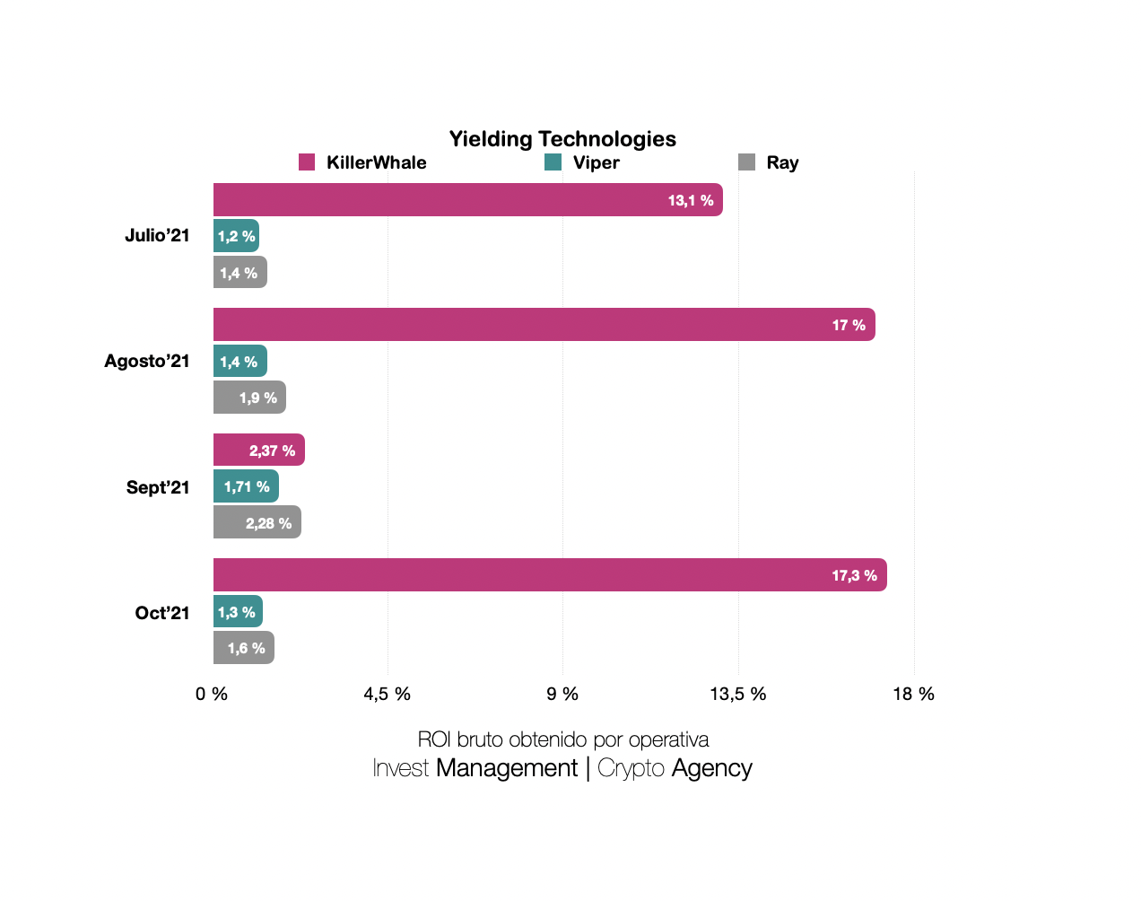 A través de email o en el canal oficial de Telegram podrás, de una manera rápida y organizada, ver los rendimientos generados por cada software de Yielding para que seas capaz de tomar tus propias decisiones.